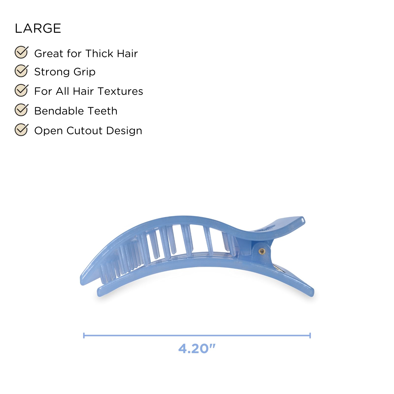 TELETIES - Large Flat Rectangle Clip - Ideal for Thick Hair - For Lying Down, Yoga, Driving & More - Strong Grip, Bendable Teeth, Comfortable Curved Design- All Hair Textures- Spring - Blue Lagoon