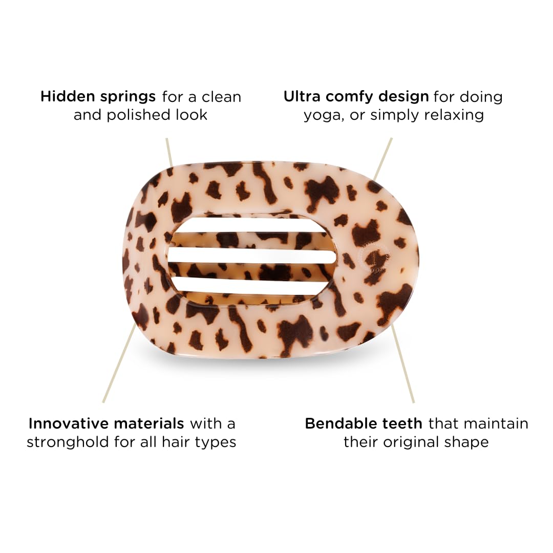 TELETIES - Large Flat Round Clip - Strong Grip, Bendable Teeth, Comfortable Curved Design - For Lying Down, Yoga, Driving & More - Ideal for Thick Hair - For All Hair Textures - Blonde Tortoise