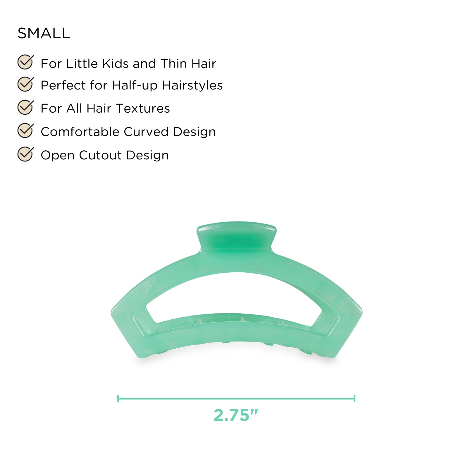 - FOR THIN OR SHORT HAIR - Our Open clips come in four different sizes to suit your hair thickness. The Small size measures 2.65 inches long and is ideal for thin hair and half-up hairstyles.
