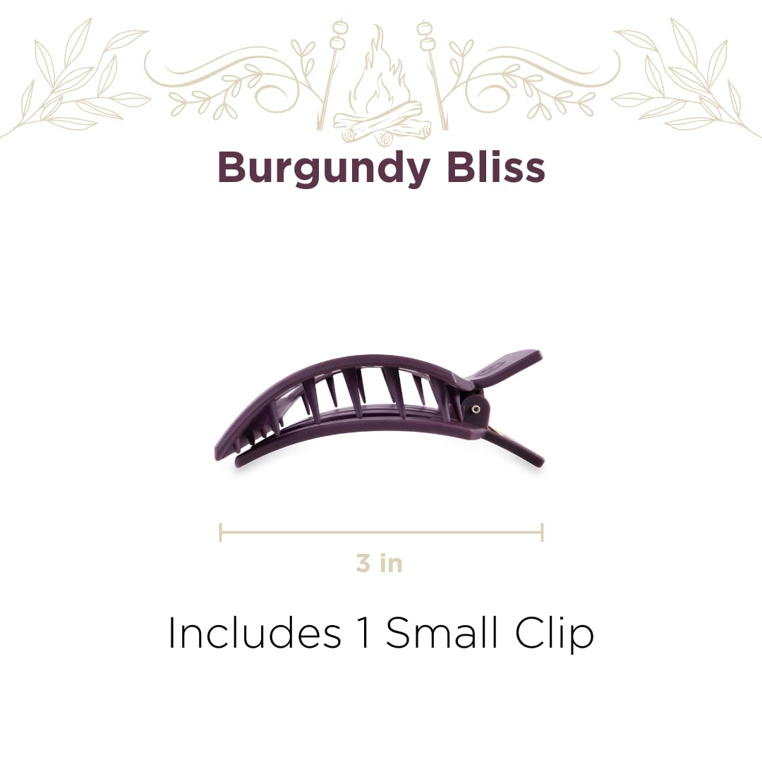 TELETIES - Small Flat Square Hair Clip - Fall Collection - Hair Claw Clips for Women - Strong Grip, Bendable Teeth, Curved Design - For All Hair Types and Textures - Burgundy Bliss