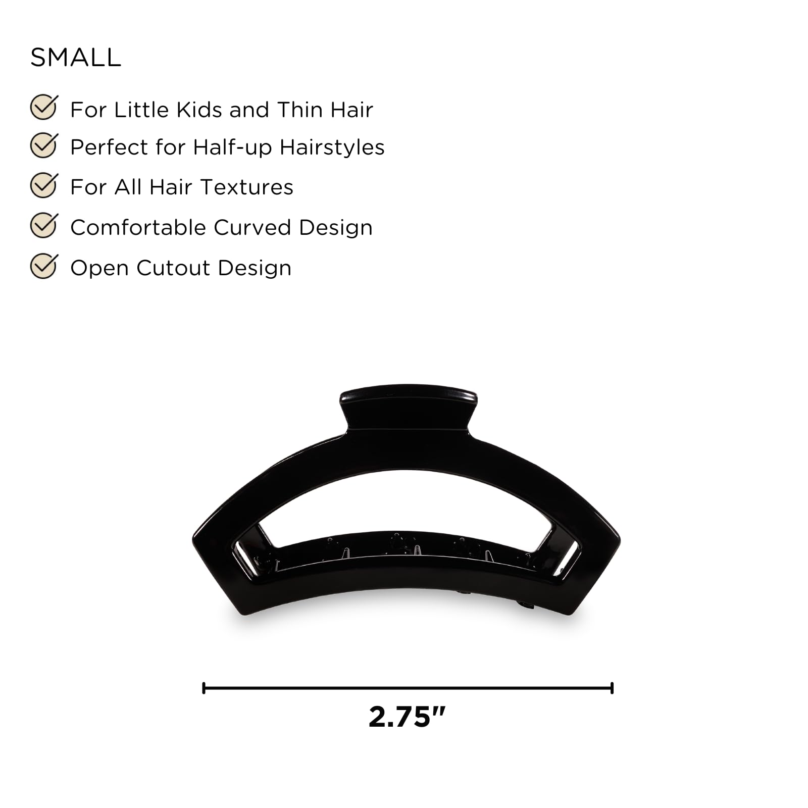 TELETIES - Small Open Hair Clip - Hair Claw Clips for Women - Strong Grip, Bendable Teeth, Comfortable Cutout Design - For Thin to Medium Thick Hair - All Hair Types & Textures - Jet Black—
